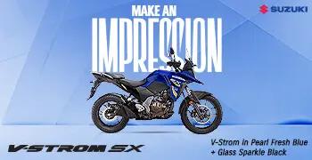 Your search for a Suzuki V-Strom SX showroom has brought you to Rajvi Suzuki, Vithalwadi, Bhavnagar, a one-stop-destination where you can buy your new V-Strom SX in Bhavnagar. At Rajvi Suzuki, you can enquire about the ex-showroom price of the Suzuki V-Strom SX, get a quote for its on-road price, explore the top features and accessories of the Suzuki V-Strom SX, avail insurance and finance for your bike, or inquire for the best available offers & discounts. You can also book a test ride online at Rajvi Suzuki, Vithalwadi, Bhavnagar, to experience what the bike has to offer. Equipped with a 249cm³, 4-stroke, single-cylinder engine, the Suzuki V-Strom SX is a popular sport adventure tourer that offers nimble handling and a lightweight build for manoeuvring through city streets, while its sporty performance ensures thrilling rides across varied terrains.